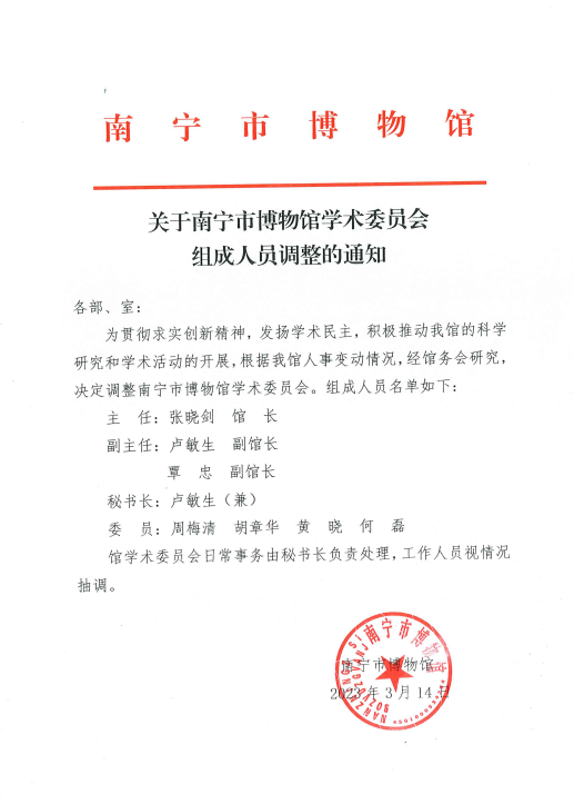 关于南宁市博物馆学术委员会组成人员调整的通知