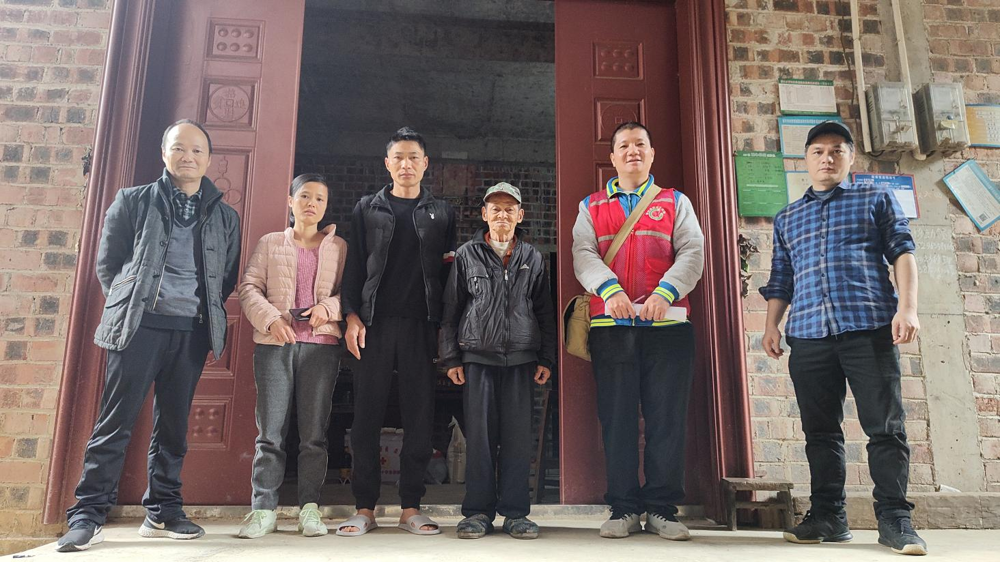 走访慰问谷安屯监测户零伟福户,并了解户主收入情况、配偶甘细凤担任村级公益岗位情况,以及两个儿子零卓荣、零卓华就读大学情况。