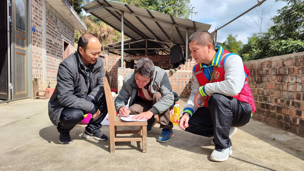 走访慰问六海屯监测户谭安平户,了解其担任村级公益岗位情况,以及女儿谭桂娥就读隆安职高情况、儿子谭桂成就读屏山中学情况。