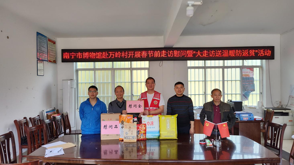 2023年1月13日,为认真贯彻落实中共南宁市委员会组织部《中共南宁市委员会组织部关于做好春节期间走访慰问驻村干部工作的通知》南组通[2023]3号、南宁市乡村振兴和防止返贫致贫工作指挥部办公室《关于开展春节前走访慰问暨“大走访送温暖防返贫”活动的通知》等文件精神,南宁市博物馆卢敏生副馆长带队赴隆安县屏山乡万岭村开展春节前走访慰问暨“大走访送温暖防返贫”活动。