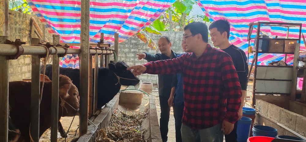 考察村民养殖脱贫产业