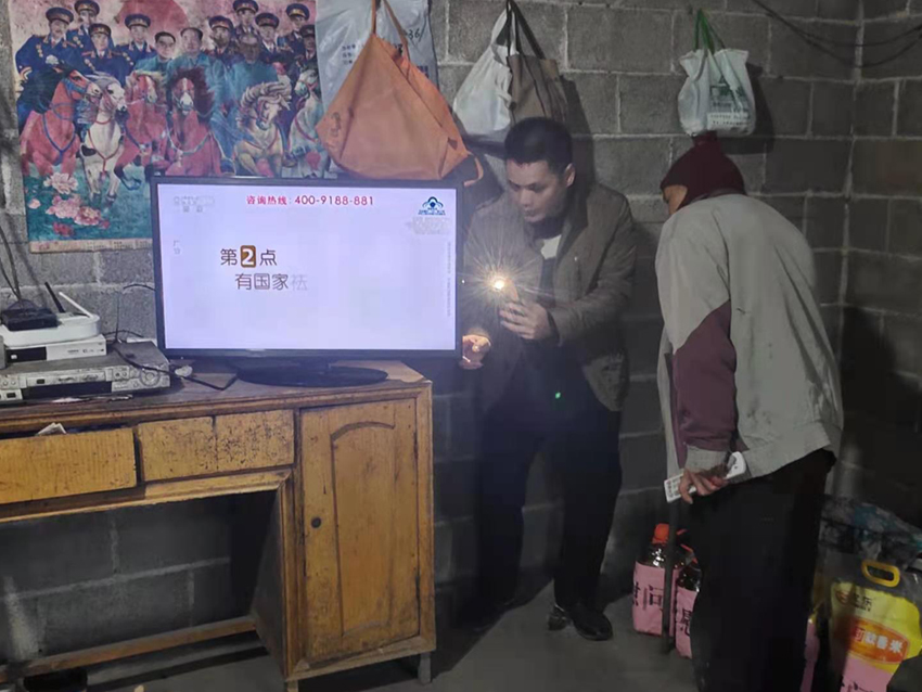 将我馆爱心人士捐献的电视机送到贫困户家里,调试安装