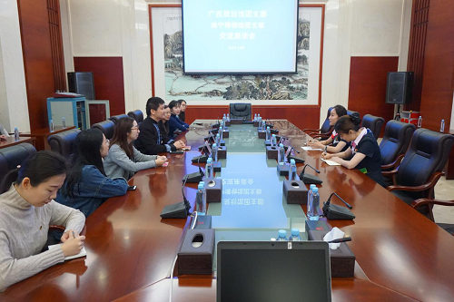 我馆团支部韦文恒书记介绍了南宁市博物馆“青年文明号”建设情况,进学校、进社区、养老院活情况以及志愿者、“小小讲解员”招募情况,还介绍了博物馆“非常6+1”品牌,即“创艺教室”、“陶艺坊”、“博艺苑”、“舌尖上的博物馆”、“幼儿绘画比赛”、“文物鉴赏”及“博物馆奇妙夜”的特色品牌活动。韦文恒书记表示,广西规划馆团支部许多工作做法值得借鉴学习,希望与双方能保持密切良好的学习交流关系,充分沟通交流,共促团建发展。