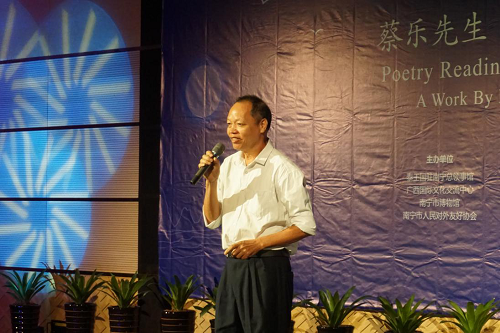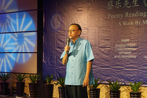 诗集《明月寄诗》收录了蔡乐先生的50余首佳作。朗诵会上,来自广西文学艺术界的学者、小学生、博物馆讲解员、泰国留学生等,分别上台朗诵了蔡乐诗集中《思恩》《赠小象》《重归东亚司中国处》《思往日》等十余首诗歌作品。其中,广西小小说学会会长申弓先生用广西客家话朗诵了《和蔡乐总领事“古松赞”》诗一首,别具新意和韵味,将朗诵会推上了高潮。
