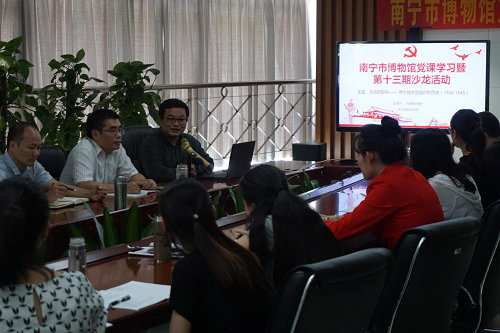 8月3日下午,南宁市博物馆在三楼会议室举行主题为《永远的旗帜—— 南宁地方党组织的历史(1926-1949)》党课学习暨第十三期沙龙活动。我馆馆长张晓剑作为主讲,向全馆干部职工详细讲解《永远的旗帜—— 南宁地方党组织的历史(1926-1949)》,让大家深入了解南宁党组历史变迁,并且就本次主题展开了讨论、交流。