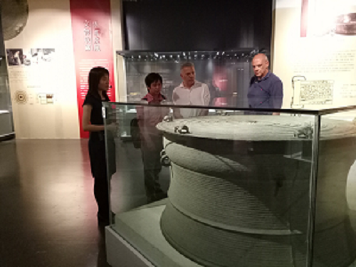 2018年6月9日下午,南宁市友好交往城市——意大利拉斯佩齐亚市市长裴路易吉·贝拉基尼先生、拉斯佩齐亚市文化和旅游局局长保罗·阿斯迪先生一行到我馆参观交流。他们参观了“心仪广西 六十国宝——广西壮族自治区成立60周年文物博物馆事业成果展”、“八音响宴——中国少数民族乐器文化展”、“杨如及捐赠书画作品展”、“红土情韵——卢权智红陶艺术展”等展览。