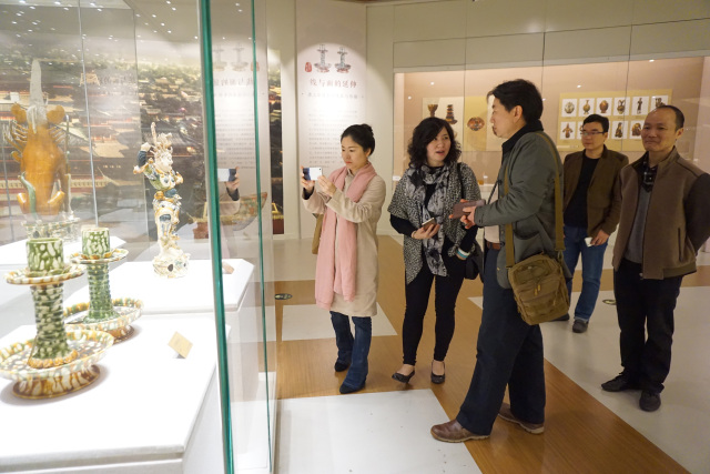 各位来宾在我馆参观了“红土情韵——卢权智红陶艺术展”、“高棉的微笑——中国艺术家摄影绘画展”以及“泥火幻彩——唐都长安三彩精华展”。来宾们对我馆的建筑建设、陈列展览等各方面的工作给予了肯定。