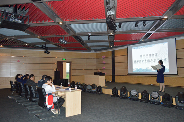 根据《南宁博物馆员工操作手册》要求,为进一步提升讲解员队伍的业务能力和服务水平,更好地展现讲解员良好的专业素质和知识修养,南宁市博物馆于2017年1月11日进行了2016年度讲解员业务能力水平考核。本次考核得到馆领导及部门领导的高度重视,馆长张晓剑、党支部书记黄胜敏、副馆长卢敏生、办公室副主任杨雪、宣教部副主任夏丽娜等领导组成考评小组参与了这次考核。