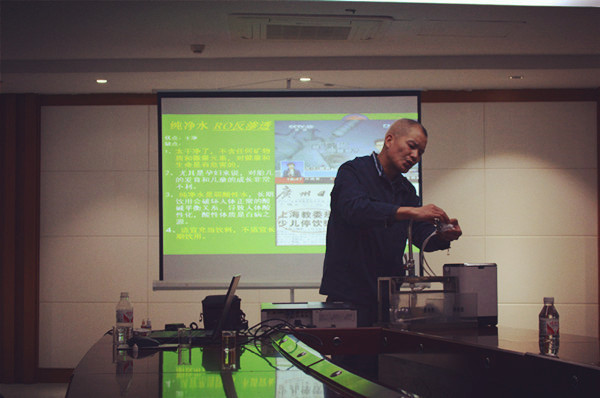 刘系明老师在讲课 据统计,此次共有34人参与了讲座培训。此次讲座不仅普及了空气污染与食品安全知识,还提升了广大干部职工绿色环保意识,受到了职工的热烈欢迎。刘系明老师在操作净水过滤器实验 我馆通过举办此次讲座,进一步增强了干部职工健康生活意识,有利于保证我馆今后各项工作的顺利开展。(文/蒙东梅 图/黄骁)