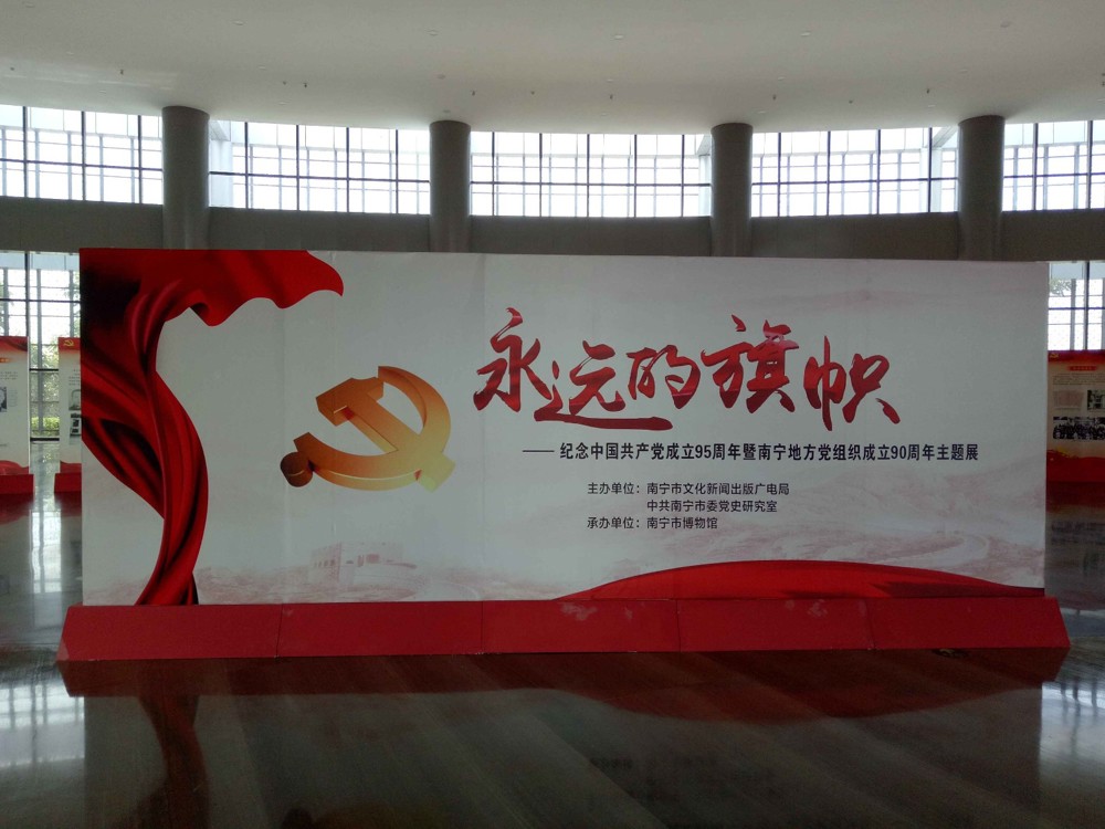 2016年7月13日,流动展览《永远的旗帜——纪念中国共产党成立95周年暨中共南宁地方组织成立90周年主题展》第三站在南宁市五象新区龙堤路15号——南宁博物馆一楼大厅展出。