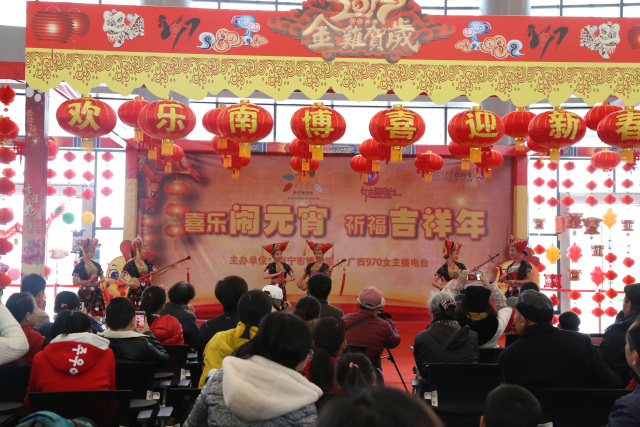 火红的灯架下,人员摩肩接踵,浓浓的节日气氛溢满现场。2017年2月11日上午,南宁市博物馆携手广西970女主播电台以“喜乐闹元宵 祈福吉祥年”为主题开展了一系列元宵活动,与观众一起感受节日的热闹与欢乐,给广大观众奉上了一场文化盛宴。