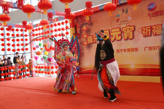 美好佳节少不了歌声和乐声,上午10点,系列活动在南宁博物馆一楼侧厅正式开展,美妙的壮族特色乐器——天琴演奏《爱心船夫》《咪咯甲》、精彩的《牧虎关》之《戏媳》片段邕剧演出及惊喜不断的变脸魔术轮番上演,热烈地拉开了活动序幕,现场爆发出一阵阵掌声。