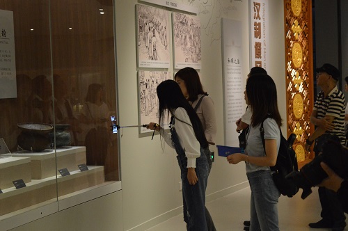 采访团一行40人在讲解员的带领下,参观了古代南宁历史陈列展和近现代南宁陈列展、大地飞歌民歌艺术展。通过参观展厅与聆听讲解,采访团进一步了解了南宁的发展脉络与历史变迁以及丰富多彩的民族文化。参观过程中,网红主播通过线上直播的方式,将镜头聚焦博物馆,向线上的观众直播了精彩的参观内容。