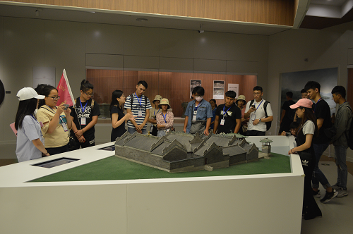 8月21日下午,我市举办的“贝侬手牵手,相约东博会”——2018年暑期台湾大学生来邕实习实训营活动走进了南宁博物馆。来自宝岛台湾的80余名大学生在讲解员的带领下,先后参观了我馆的古代南宁、近现代南宁基本陈列和红陶馆。