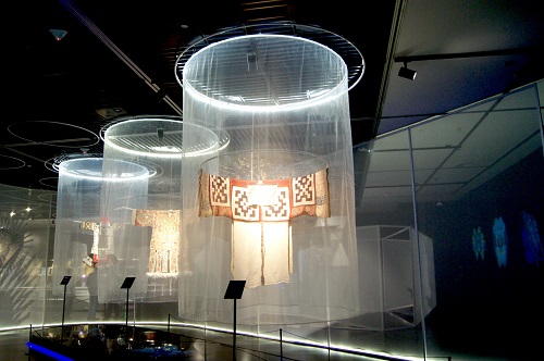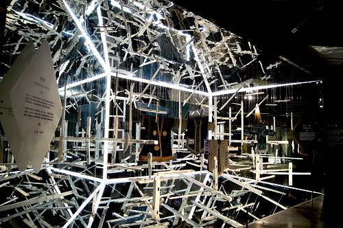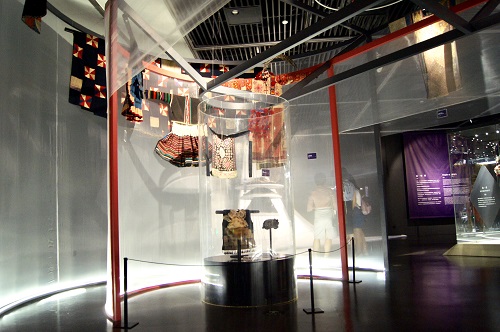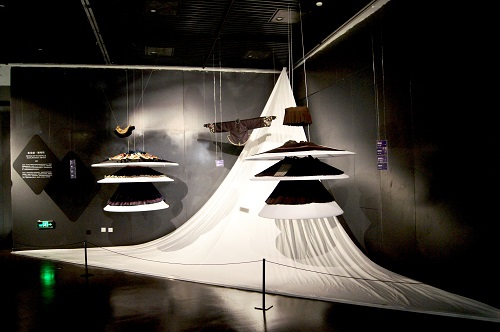 本次展览通过时间、空间、工艺、交错四个单元,探讨民族服饰文化中所表现的民族传统与现代文化的内在联系。贵州苗族百鸟衣的美丽花纹,彝族支系白倮人男性服饰的太阳纹样,还有多样的纺织机器与材料,它们共同讲述着服饰中的传统故事以及服饰所包含的现代生命力。