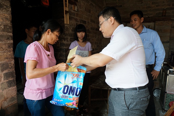 随后,在丁村村委工作人员的带领下,全馆各扶贫小组按照事前计划各自结对,对丁村旱塘屯和旱度屯共11户贫困户进行入户慰问和访谈。入户后,通过与贫困户交心聊天、拉家常,我馆详细了解贫困户的家庭成员、经济来源、孩童上学等基本情况,有针对性地宣传国家相关的惠民政策。在慰问过程中,我馆领导送出由我馆工作人员自发捐赠的慰问金以及由广西印象物业有限公司捐赠的食用油、洗衣粉等日常生活用品,还留下了责任帮扶人的联系方式,为困难户解决部分生活困难,鼓励贫困户增强脱贫致富的信心和决心。
