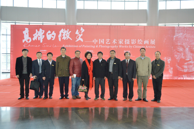 2017年1月24日上午,柬埔寨皇家科学院常务副院长宋春奔博士(副部级)在广西国际文化交流中心秘书长赵克、广西中华文化促进会副主席兼秘书长陈晓玲、广西区江滨医院院长杨建荣等人陪同下莅临南宁博物馆,参观了“高棉的微笑——中国艺术家摄影绘画展”。我馆馆长张晓剑,党支部书记黄胜敏,副馆长卢敏生热情接待了各位来宾。