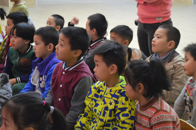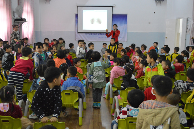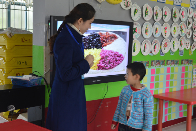 区直属机关第一幼儿园的小朋友全神贯注地听讲解并积极回答问题