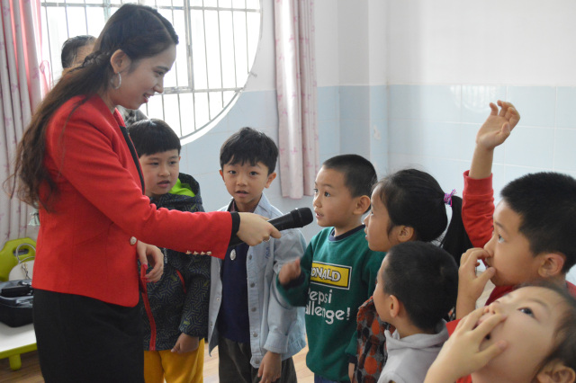 南宁市江南区新兴苑久善幼儿园小朋友在课堂上积极回答问题