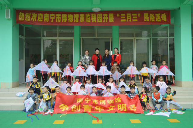 3月23日上午,《我心中的“三月三”》小课堂活动在南宁市江南区新兴苑久善幼儿园开展,小课堂活动刚开始,教室里的小朋友们就被我馆讲解员清唱的“什么水面打跟斗哎、什么水面起高楼”吸引了注意力,随后课堂上的小朋友们对“三月三”小课堂十分兴趣,无论是听讲解员讲“三月三”小知识还是提问,大家都全神贯注的听讲并积极地回答问题,在“DIY风筝”的活动中小朋友们更是发挥想象在风筝上自由作画,我们的活动最后在大家的欢笑声中留影结束。