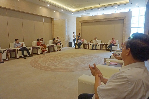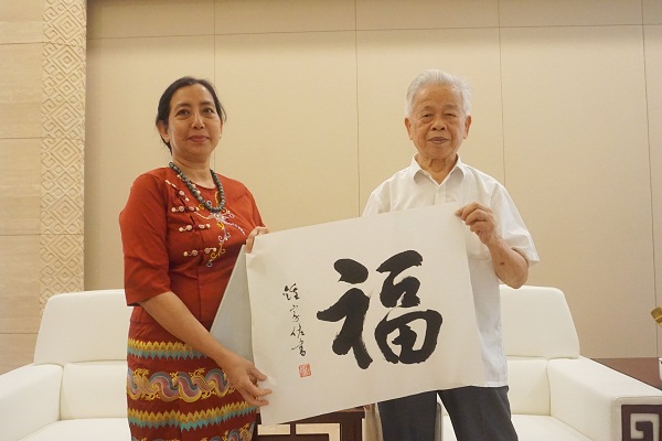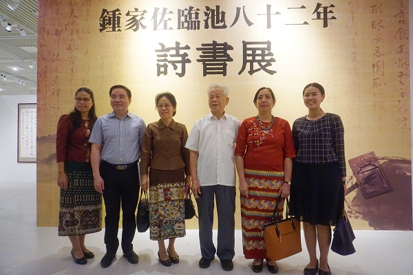 前来观展的嘉宾有陈辉光、丁廷模、李振潜、潘琦等老同志,自治区人大常委会副主任、广西国际文化交流中心理事长高雄、广西文联党组书记洪波以及广西中华文化促进会、中国书法家协会、南宁市外事侨务办办公室、南宁市人民对外友好协会等单位有关领导,还有老挝驻南宁总领事馆总领事万习•维拉亚彭、缅甸联邦驻南宁总领事馆总领事丁埃凯、越南驻南宁总领事馆领事阮泰山、泰王国驻南宁总领事馆领事吴万雅、老挝驻南宁总领事馆副领事孔法占•展达翁等外国来宾。