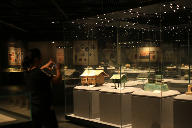 仪式结束后,各位领导、专家、观众跟随讲解员参观了展览,领略两千多年前汉代文化的神韵和魅力。 汉代是一个经济和文化都高度繁荣的朝代,从广西发现的汉墓遗址、出土的文物及海上丝绸之路中可以了解汉代广西经济和文化发展的印记。 本次展览通过展出发掘于广西贵港、合浦、梧州等地的汉代墓葬遗址、出土文物等内容,并围绕这些展示内容展开一系列活动,使广大观众对汉代墓葬及器物和汉代广西的经济文化发展有初步了解,加强对传统文化的认识。