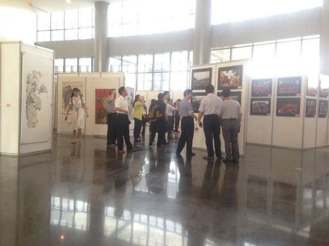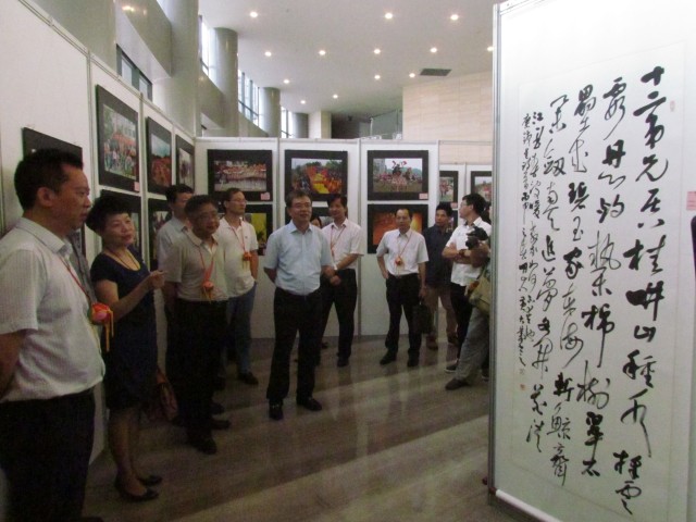 我馆讲解员为各位领导、观众讲解南宁市创建全国民族团结进步示范市的创建工作情况、亮点、经验及获得的成效等。 在实物展品区域突出展示了民族团结进步创建活动所获得的成果。 民族团结进步创建活动只有起点,没有终点。南宁将高举民族团结旗帜,巩固和发展已经取得的创建活动成果,凝聚全市各族人民的力量,把南宁市的民族团结进步事业不断推向新的高度,营造壮乡首府团结和谐的美好愿景,为实现中华民族伟大复兴的中国梦而努力奋斗! 此外,由南宁市民族事务委员会、南宁市文学艺术界联合会主办的南宁市“民族团结进步”美术书法摄影作品展也在南宁博物馆一楼侧厅展出。下面请跟随小编一起来看看吧! 创作者们用饱蘸浓情的笔墨,独具匠心的慧眼,通过书之神、画之韵、影之美展现了创建工作中所取得的成绩、亮点和特色;