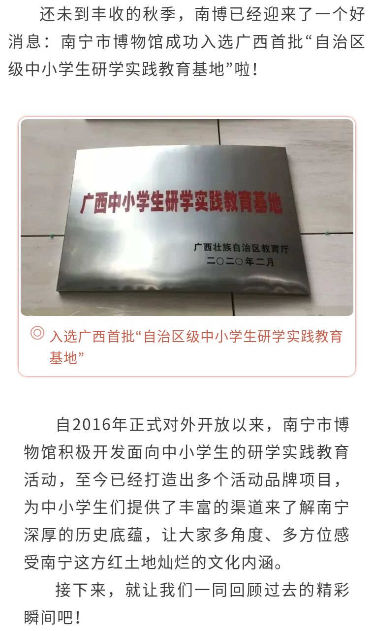 南宁市博物馆获评广西首批“自治区级中小学生研学实践教育基地”
