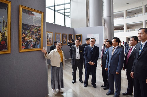3月19日上午,《泰之美—泰国风情展》暨《扬帆新时代——揭阳中国画院名家邀请展》在南宁博物馆一楼大厅同时举行开展仪式。泰国、缅甸、柬埔寨、老挝、马来西亚等国驻南宁总领事馆的外交官员、揭阳中国画院的艺术家、媒体记者等中外嘉宾约200多人参加开展仪式。