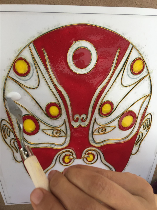 本次活动开始首先由我馆工作人员讲解景泰蓝工艺画的制作过程,随后参与活动的观众便在工作组人员的指导下体验掐丝珐琅工艺中的掐丝、点蓝的制作过程,制作出自己的景泰蓝装饰画。