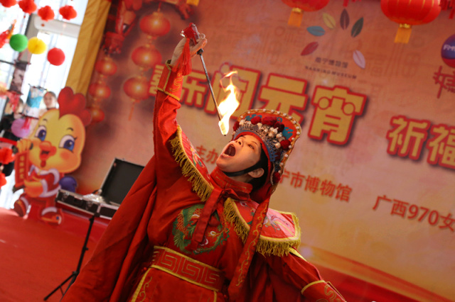 最近的节日有点多 仿佛昨天还在吃着年夜饭 今天就是正月十五元宵节了 大家记得吃汤圆哦! 虽然有些感慨春节过得太快 但元宵节也是一个阖家欢乐的好日子呀 今天您去南宁博物馆闹元宵了吗? 让我们一起来回顾 现场精彩纷呈的活动吧 (前方多图预警,请自行保存图片~哈哈~) 火红的灯架下,人员摩肩接踵,浓浓的节日气氛溢满现场。2017年2月11日上午,南宁市博物馆携手广西970女主播电台以“喜乐闹元宵 祈福吉祥年”为主题开展了一系列元宵活动,与观众一起感受节日的热闹与欢乐,给广大观众奉上了一场文化盛宴。 随着美腻滴主持人登场 表演开始啦~ 人山人海 赶紧占据最佳地理位置欣赏吧 1 传统民俗节目 美好佳节少不了歌声和乐声,上午10点,系列活动在南宁博物馆一楼侧厅正式开展,美妙的壮族特色乐器——天琴演奏《爱心船夫》《咪咯甲》、精彩的《牧虎关》之《戏媳》片段邕剧演出及惊喜不断的变脸魔术轮番上演,热烈地拉开了活动序幕,现场爆发出一阵阵掌声。 天琴演奏 2 邕剧演出 3 变脸魔术 2 讲解员讲解“花灯” 元宵节素有“有月无灯不算春”之说,每逢元宵佳节,人们都挂起象征团圆意义的传统工艺品——花灯。 在观看表演后,现场观众们跟着讲解员进入灯架区,在观看宫灯、走马灯、纱灯、龙灯、鲤鱼灯、荷花灯等精美花灯的同时,听讲解员介绍花灯的历史及其发展,细品中国传统花灯的魅力。 传统民俗亲子活动——包汤圆、做花灯、猜灯谜将此次元宵活动推上了高潮。 观众们排起了长长的队伍报名参与活动,在包汤圆及做灯笼活动现场,观众们以家庭为单位一起动手包汤圆、做灯笼,一起感受传统文化的无穷魅力,更将浓浓亲情融合于其中。 3 包汤圆 在包汤圆过程中,观众们还自发相互帮助,以老带幼,将包汤圆的技艺一代代地传承。 排好队,先报名 有秩序地领取馅料、盒子等物料 现场教学 包教包会~ 搓搓面团 放馅啦 大家一起包汤圆 一个一个摆整齐 包好啦~好开心~