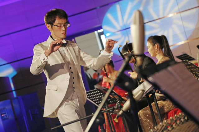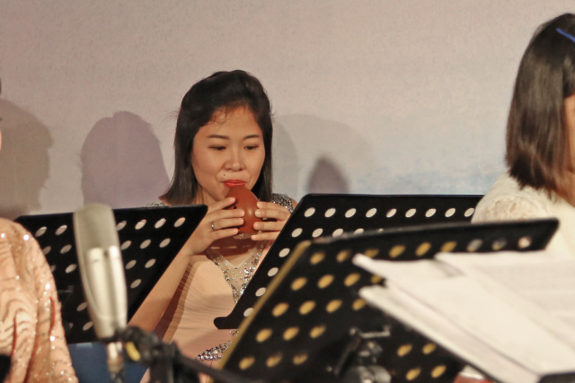 一曲描绘晚霞辉映下渔人载歌而归的优美画面,表达对祖国美丽河山的赞美和热爱的古筝与乐队《渔舟唱晚》将音乐会推向高潮。