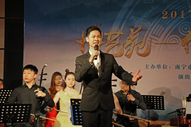 紧接着,才华横溢的音乐会主持人袁露给观众们演唱了《百里漓江百里画廊》、《山歌唱出好兆头》2首曲子,清澈动听的歌声仿佛把观众们带进奇山连秀水的漓江、绵延百里的锦绣画卷,如梦似幻,身临其境,赢得观众们的阵阵掌声。