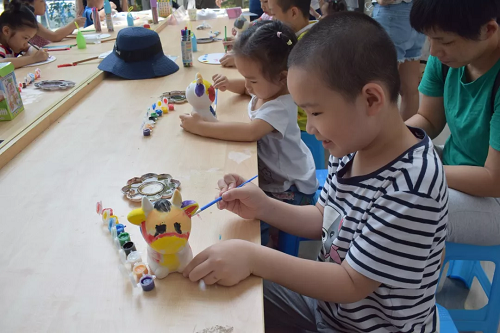 端午假期,创艺教室推出了“粉墨春秋”——彩绘脸谱、“妙手丹青”——瓷盘画、“淘气萌宠”——十二生肖石膏涂色和“花团锦簇”——彩绘团扇等手工活动,得到了众多大小朋友的热情参与。