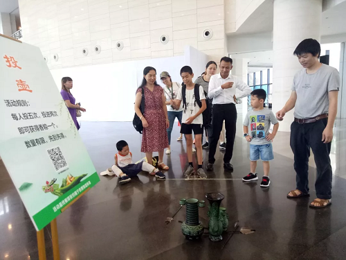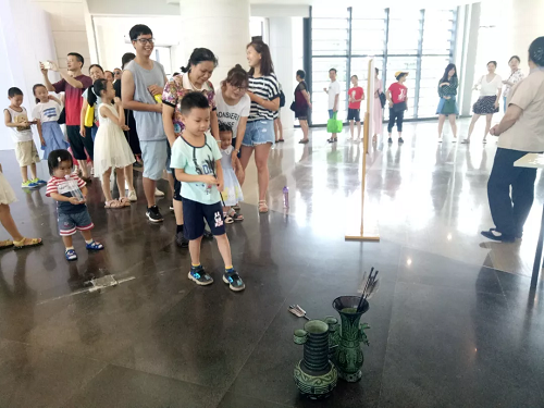 另外南博还设置了传统投壶活动,来馆观众都可以体验,按要求完成者可获得香粽一个,大家兴致高涨,排起了长队体验投壶,现场一片欢声笑语。