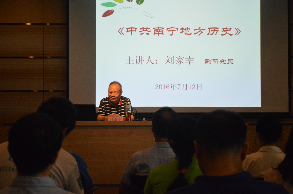 7月12日上午,南宁地方史专家刘家幸在我馆一楼多功能厅举行主题为《中共南宁地方历史》的讲座。此次讲座由我馆党支部书记黄胜敏主持,我馆全体工作人员参加了此次讲座。