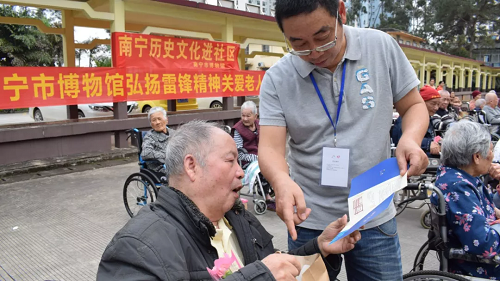 尊老敬老是中国的传统美德。为进一步弘扬雷锋精神,2019年3月20日下午,南宁市博物馆工作人员携志愿者小分队走进了广西壮族自治区总工会南宁工人疗养院,给老人们带去一份关爱。