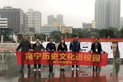此次南宁市博物馆工作人员携手志愿者共同开展了讲解介绍“我身边的文物古迹”流动展板、有奖答题等活动。